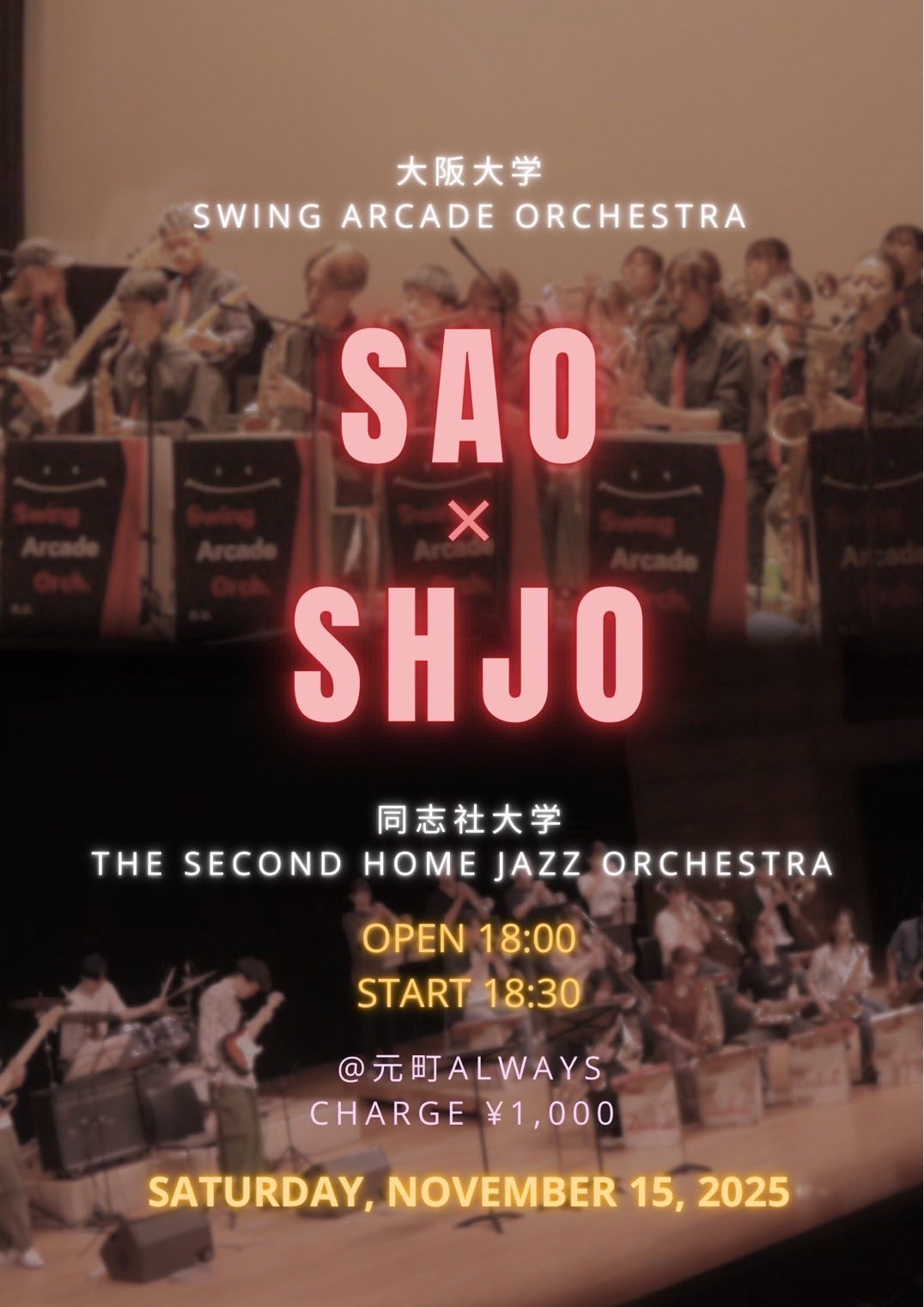 | 15日(土)夜 | SAO×SHJO![]() Open18:00 Start 18:30 Charge ¥1,000 (要別途1drオーダー) |