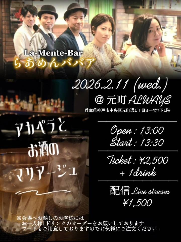 | 11日(水) | らあめんババア![]() Open13:00 Start 13:30 Charge ¥2,500 (要別途1drオーダー) |